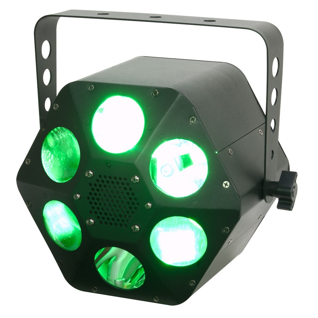 - High output Moonflower effect with 32-Watt Quad-Color LED 4-in-1 (Red, Green, Blue, White) technology produces color-changing beams of light |