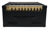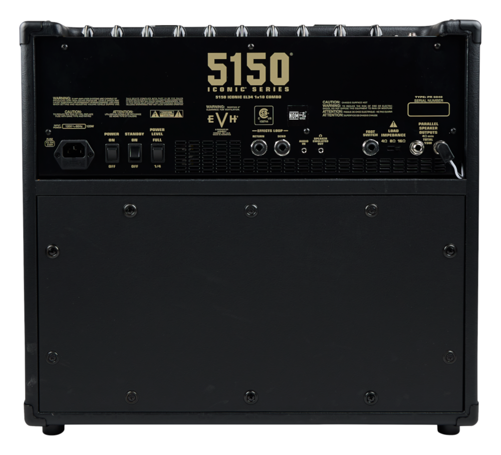 Other features include a one-button footswitch, effects loop, dual parallel speaker output jacks, ¼ power switch to reduce wattage - allowing you to crank the amp and still preserve tone but without destroying your neighbor’s solitude, and a speaker-emulated DI 1/8" output jack with power amp mute for accurate all-tube EVH tone for recording direct or using through any PA system. Sporting sophisticated and distinctive EVH style, the 5150 Iconic Series 15-watt 1x10 combo is wrapped in either Black textured vinyl with a black cloth front grille and features gold and black 5150 and EVH logo badges in the upper left and lower right corners. This all-tube combo is finished off with a brushed gold anodized aluminum top panel, vintage-style chicken-head knobs and molded black plastic top handle.