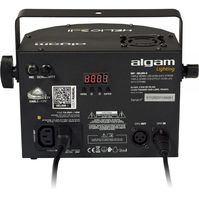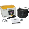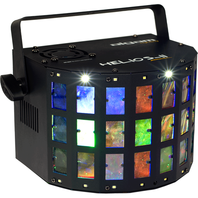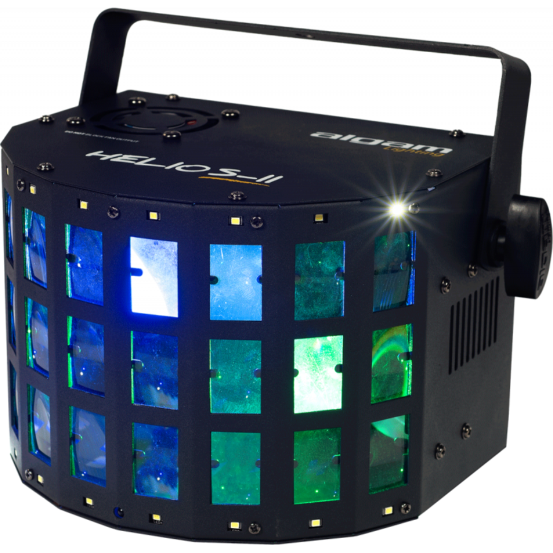 Algam Lighting's Helios II is the perfect 2-in-1 solution for livening up your private events or performances with ease. Its 4x 3W RGBW LEDs, combined with 16 white LEDs for the strobe effect, will allow you to create a festive and colorful atmosphere in a matter of seconds thanks to the many integrated scenarios, at a very affordable price. The Helios II has been designed to be ready to use straight away, without long and tedious configuration. Using the remote control supplied or the digital screen, you can choose the operating mode you want, change the colours and adjust the programme speed in a matter of moments! With its 2 automatic operating modes - Auto and Auto with music detection - perfect for novices, the Helios II is a dancefloor classic that's remarkably easy to use, and can also be controlled remotely via DMX protocol for more personalised effects.