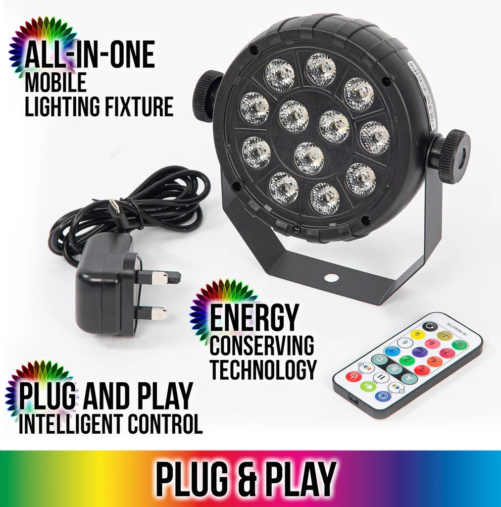 • 12 powerful colour changing RGBW LED's with a wide visual spread, fill any room an array of dazzling patterns and effects.
