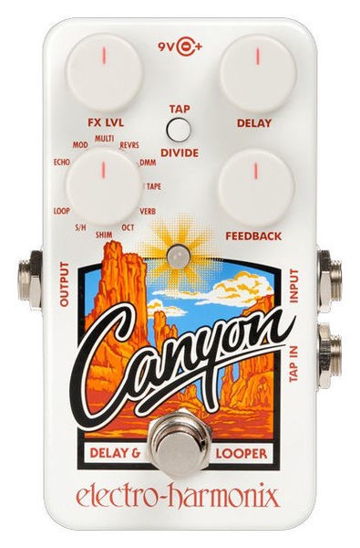 Packed with more power than pedals taking up more real estate, the compact Canyon features a collection of awe-inspiring effects. From pristine digital delay to warm and warbly tape echo, reverse and modulated delays, cascading octave delay and shimmer… even an exquisite Deluxe Memory Man emulation. There are ten different effects in all plus a fully featured looper. Internal or external Tap Tempo with tap divide and a chasm full of intuitive secondary knob controls deliver a truly grand experience.