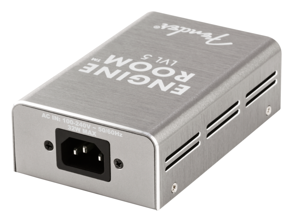 Pedals need clean, isolated power and Fender's Engine Room™ LVL5 Power Supply is capable of the task. Featuring five ground isolated power outlets, each outlet is capable of 9Vdc at 500mA to keep your pedals performing at their peak. Works as a standalone power supply for smaller pedalboards or can be daisy-chained with our LVL 12 for those tone fanatics with larger boards.
