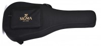 The Sigma GJA is a jumbo with solid spruce top and flamed maple back and sides (beautifully book-matched on the back). The maple creates a bright and present sound which sits beautifully with the size of the jumbo body.