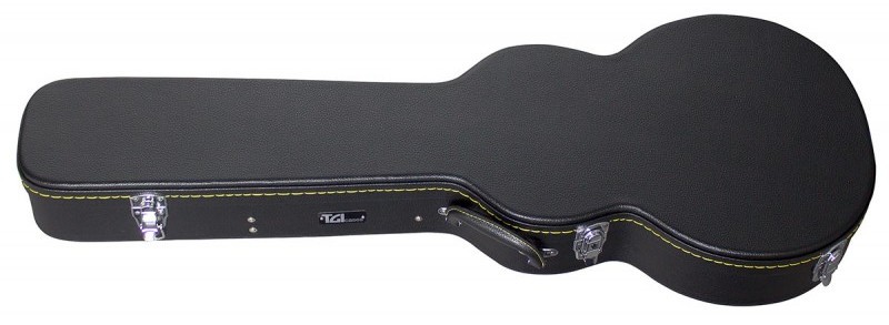 Wooden Hard Shell with Black Leatherette Outer Cover and Accented Stitching. Plush Lining. Solid Grab Handle. Strong, Durable Metal Clasps.