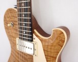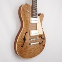 This unique, top-end guitar is an early example from the Seth Baccus Special Reserve series. One of the UK's premier luthiers, Seth hand-made this stunning instrument from the most prized materials and beautifully figured tone-woods. This SR#5 Nautilus features a Figured Sycamore top, a very rare Fiddleback Mahogany carved one-piece hollowbody, a Fiddleback Mahogany neck with a Figured Ebony fingerboard. Finished in a satin oil and wax hand-rubbed finish. It has Gotoh 510 mini tuners and sports a Bare Knuckle P90 neck pickup, a Bare Knuckle Humbucker bridge pickup (coil-tapped with a push/pull tone pot), with Bare Knuckle CTS 550K custom pots and high quality oil & paper caps.