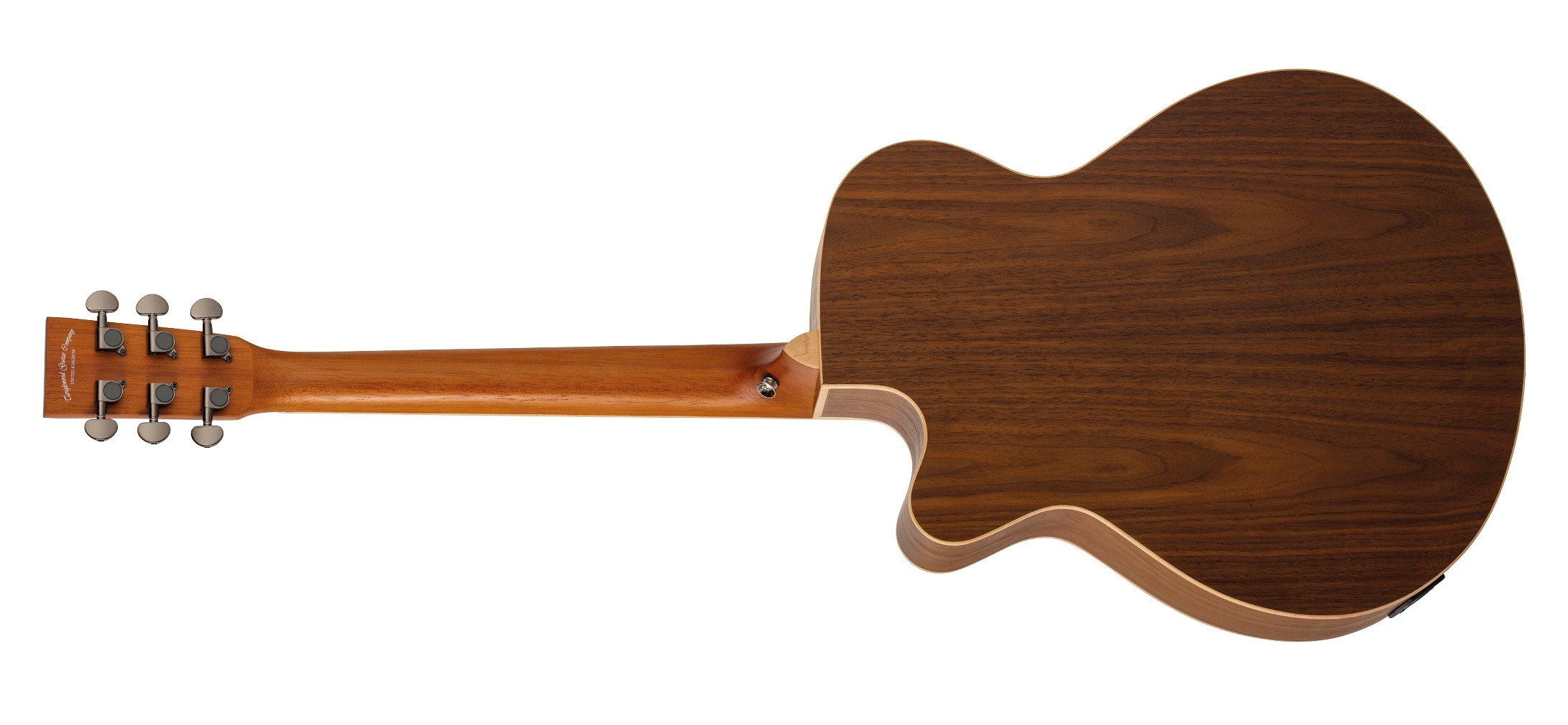 The back and sides of the guitar are crafted from Black Walnut, known for its rich, warm tonal characteristics. Black Walnut enhances the depth and warmth of the guitar’s sound, complementing the bright clarity of the Spruce top. This combination results in a well-rounded, expressive tonal palette perfect for various playing techniques.