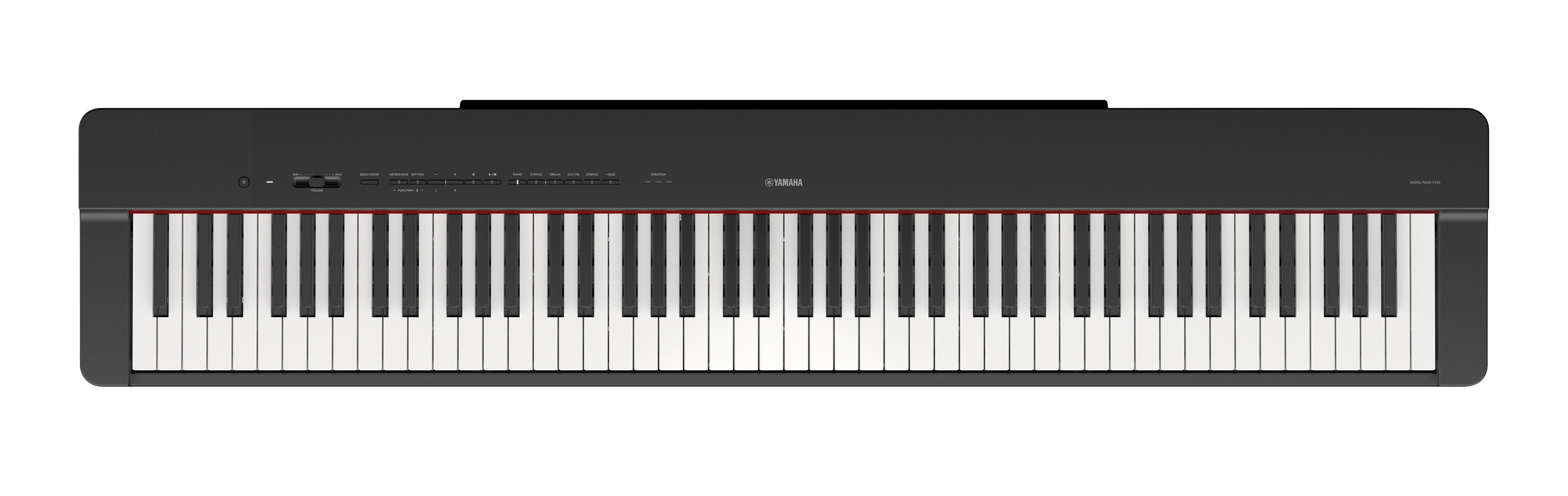 Compared to its predecessor, the P-225 features a much shorter and thinner body design with a compact style. This model looks beautiful from any angle, and blends in well with any room. To achieve a smaller product chassis, we developed the new GHC (Graded Hammer Compact) keyboard (88 keys), which is built to uncompromising standards and offers the same weighted acoustic piano-like playing feel as the GHS (Graded Hammer Standard) keys used in previous models in the P Series.