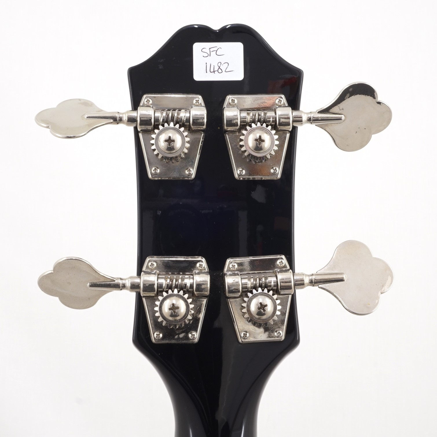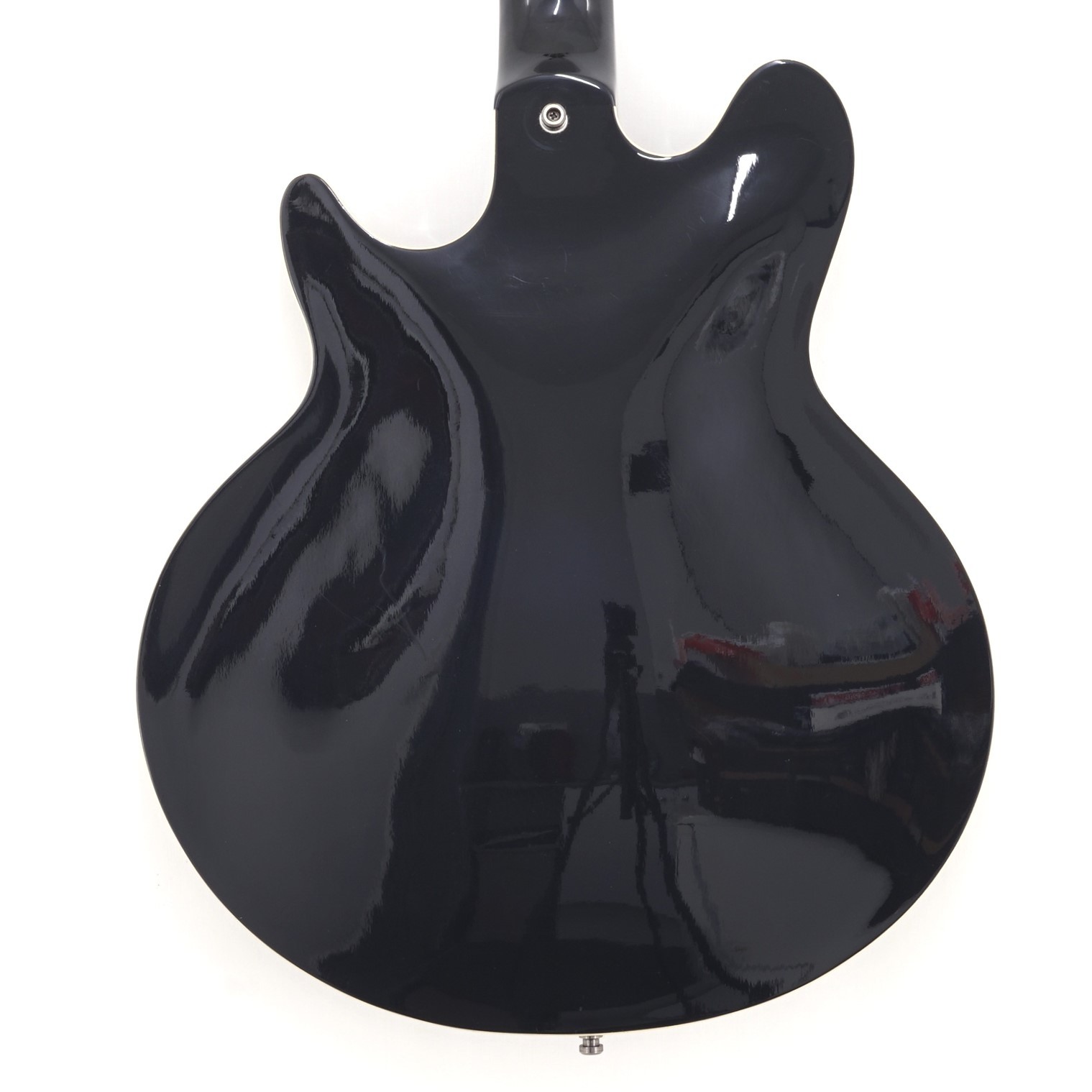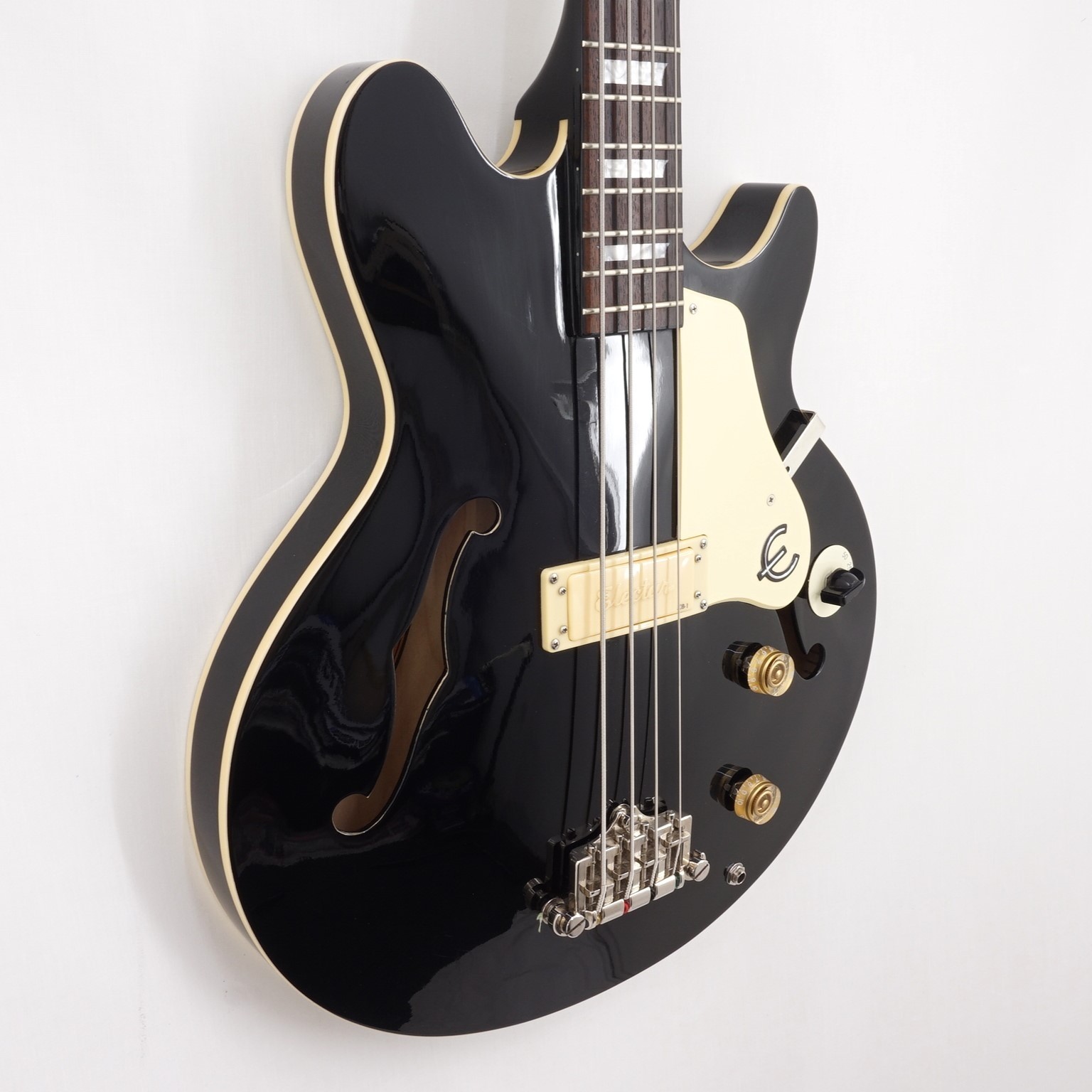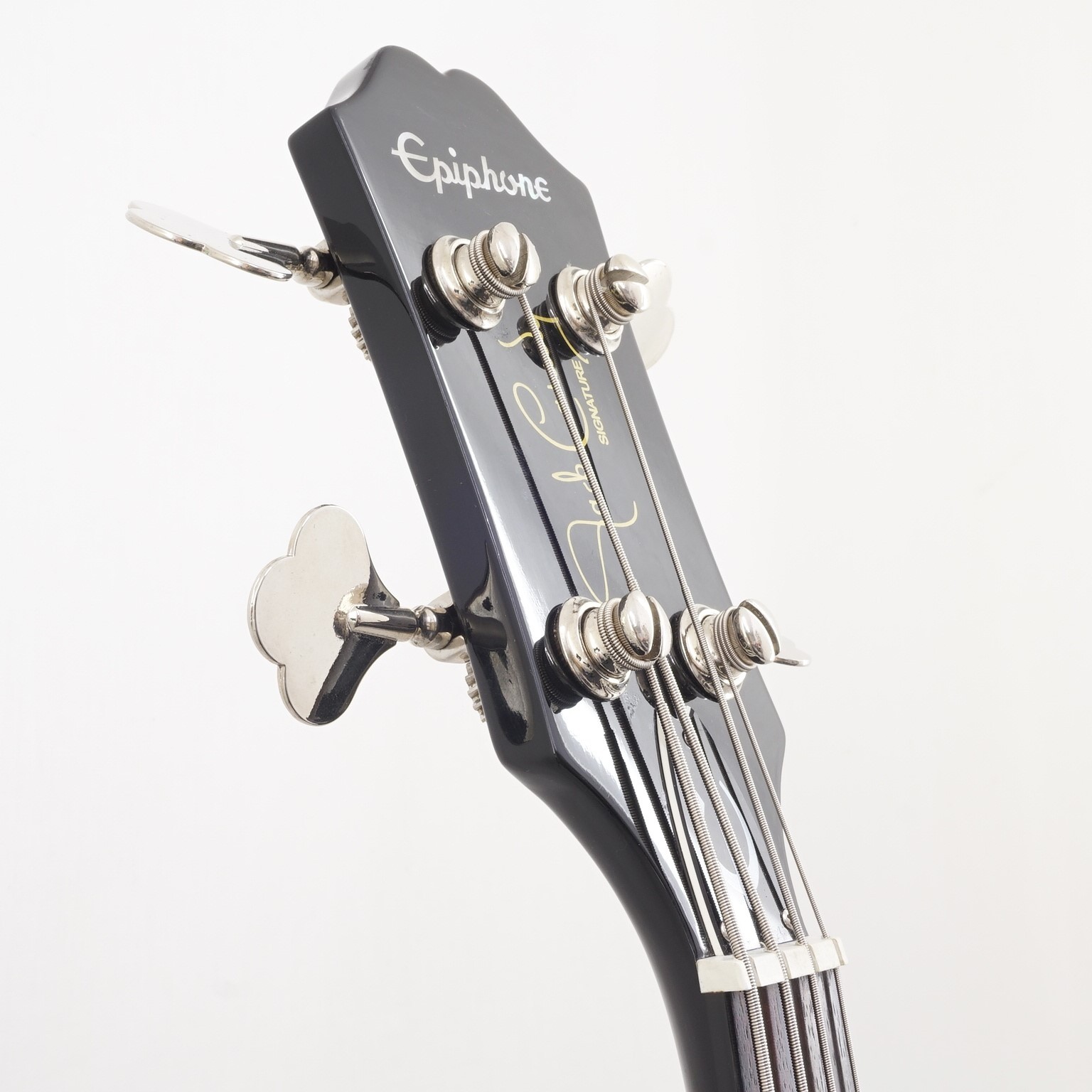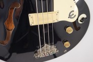 There's nothing quite like this Jack Casady signature bass from Epiphone. With an archtop, hollow Maple body, and a full 34" long-scale Mahogany set-neck. Finished in a now discontinued, gloss black with cream pickguard and binding.